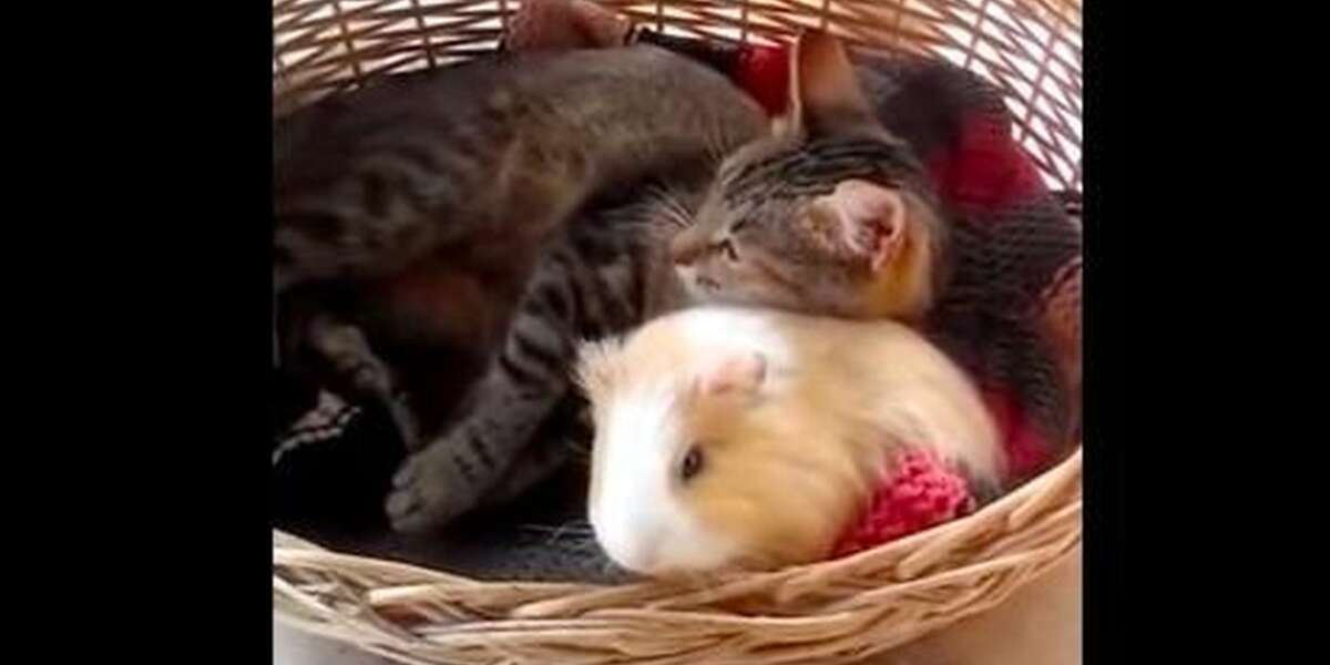 Adoption fees vary depending on the type of animal but guinea pigs are 5 each rabbits are 58 and dogs and cats are 30. The cat would normally be chasing the guinea pig so to see them together as best friends is very rare Julia told People Magazine. Cats were originally bred to control the rat population on farms ships and other places.